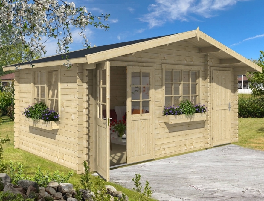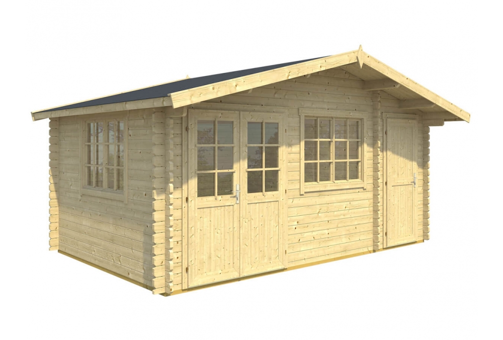 This natural colored solid wood DIY cabin kit is easy to assemble and will provide the extra space you need in an affordable measure. Whether you want to convert Lexington 150 into a beach or lake cottage, guest quarters, art or music studio, office or game room the possibilities are all but endless. There are two rooms within the walls of Lexington 150, one larger and the other smaller. Doors are available to enter each space separately, however an additional door can be added to the wall between both rooms as an further option. From the prehung and glazed doors and windows to preassembled gables no interior finishing is necessary. The cabin kit comes complete with the components required to install Lexington 150.